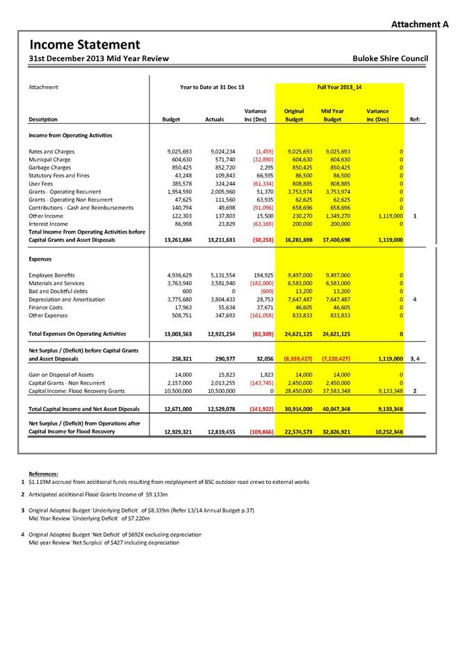Attachment 1    Finance Report - 2013 - 2014 Mid Year Budget Review