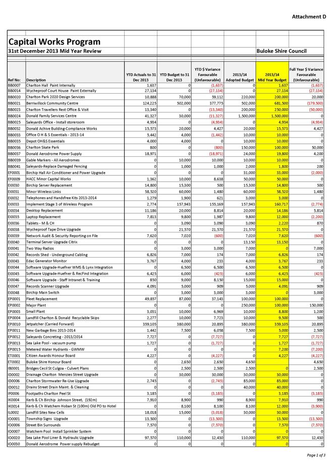 This highlights the issues raised in Council’s budget papers and the recent VAGO Report about the ongoing financial sustainability of Council.  Council will need to consider reductions in Operating and Capital Expenditure in the preparation of its 2014-15 budget and Long Term Financial Plan.