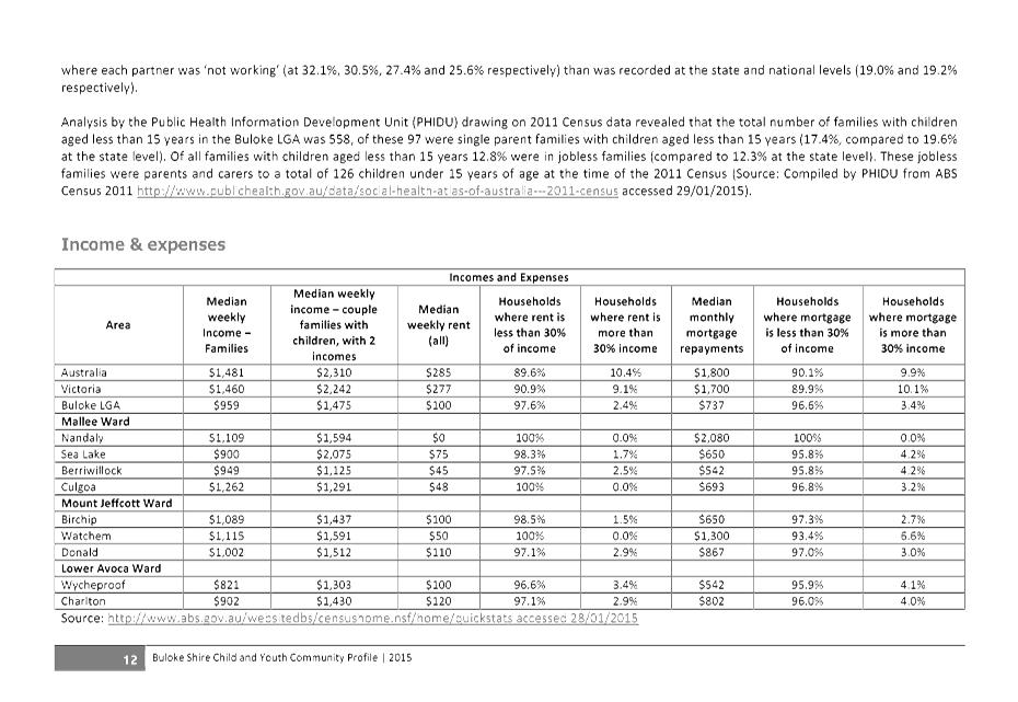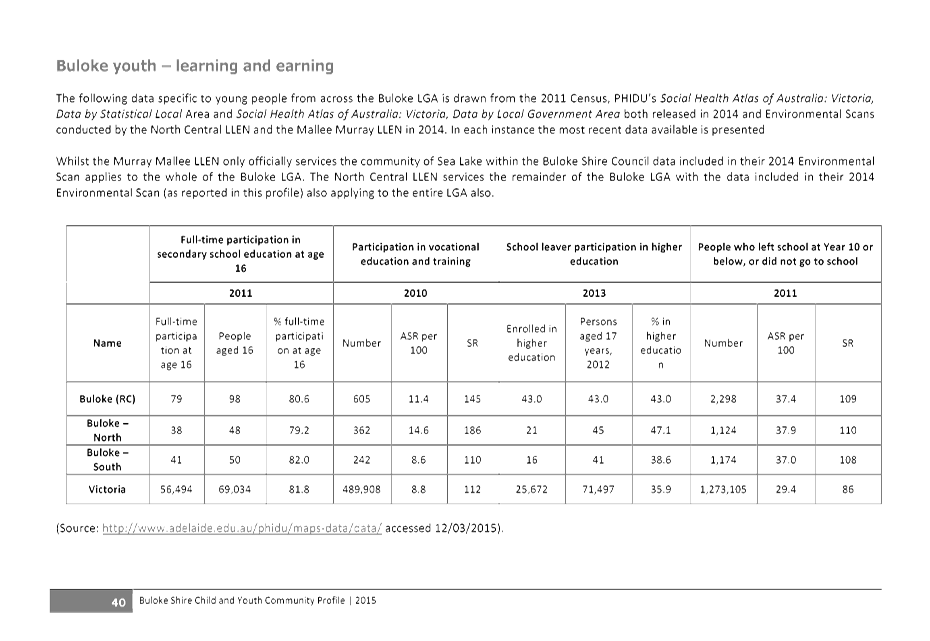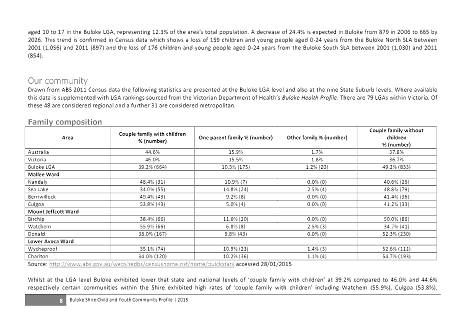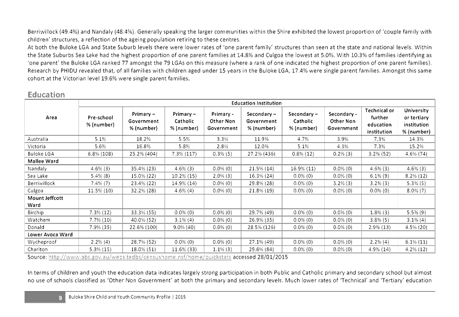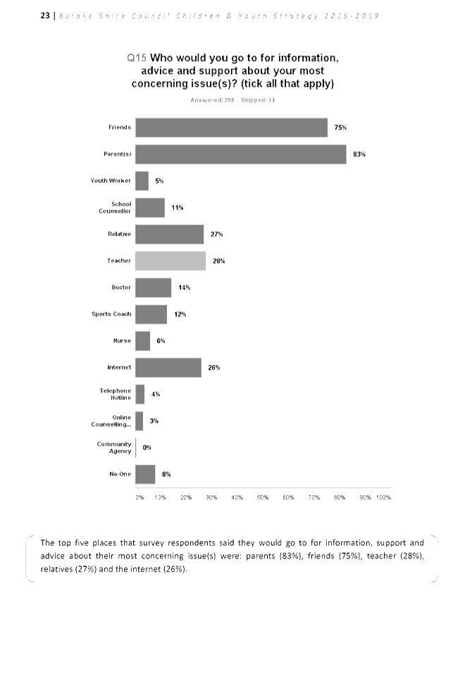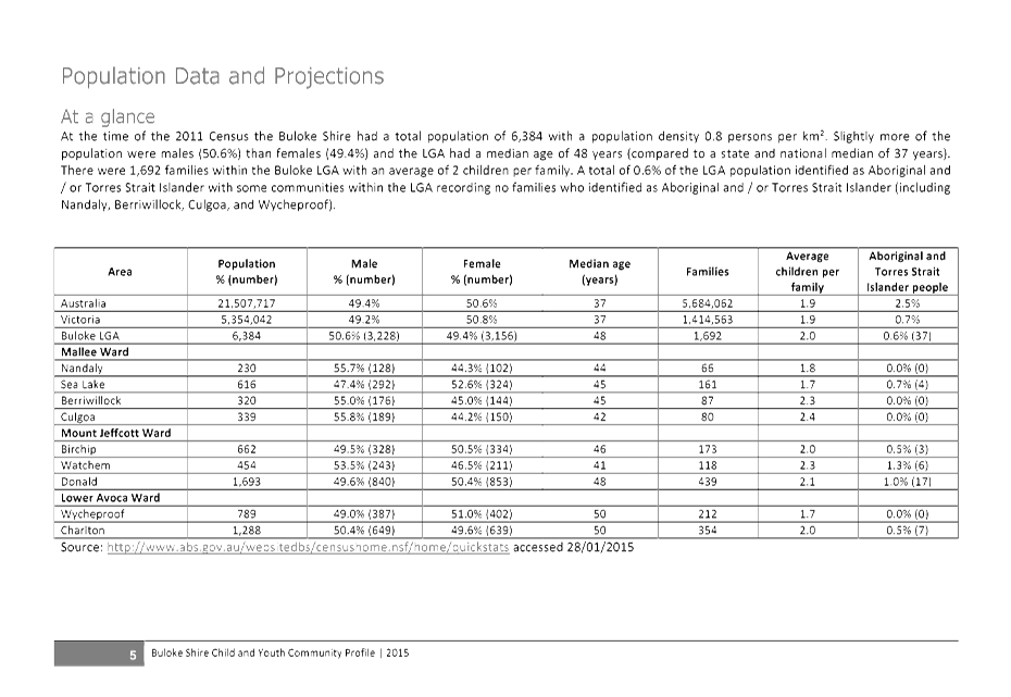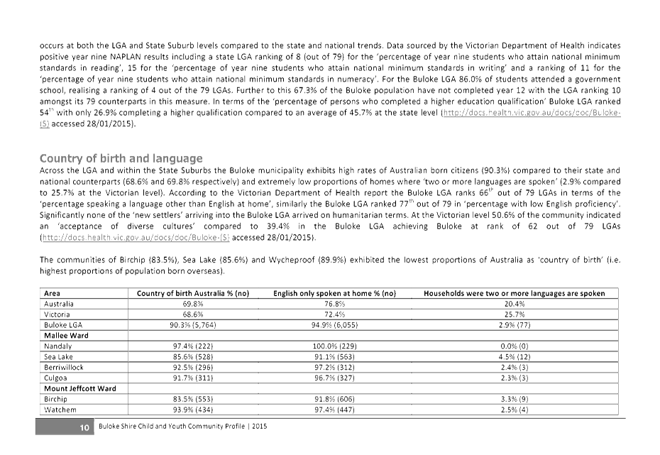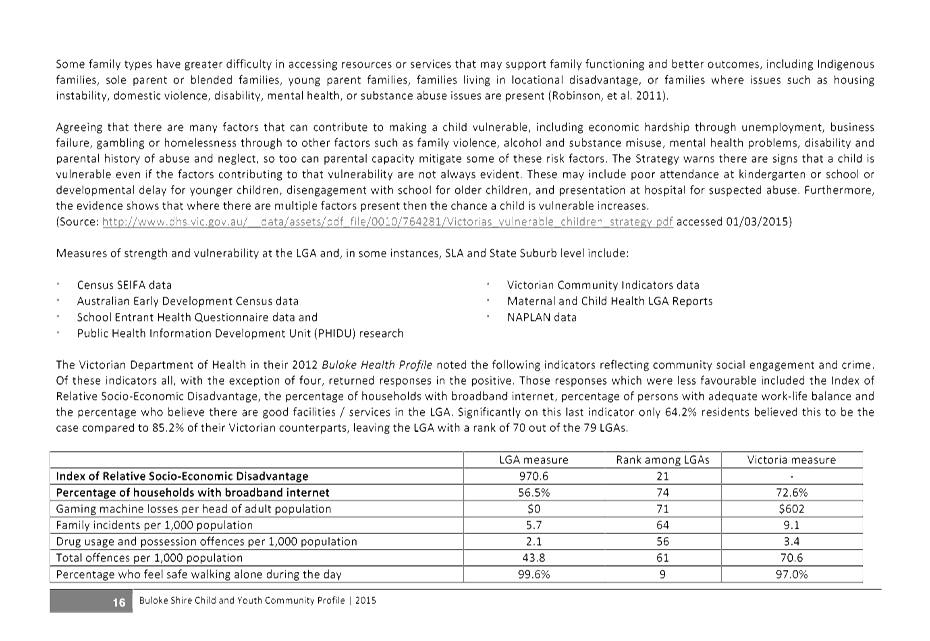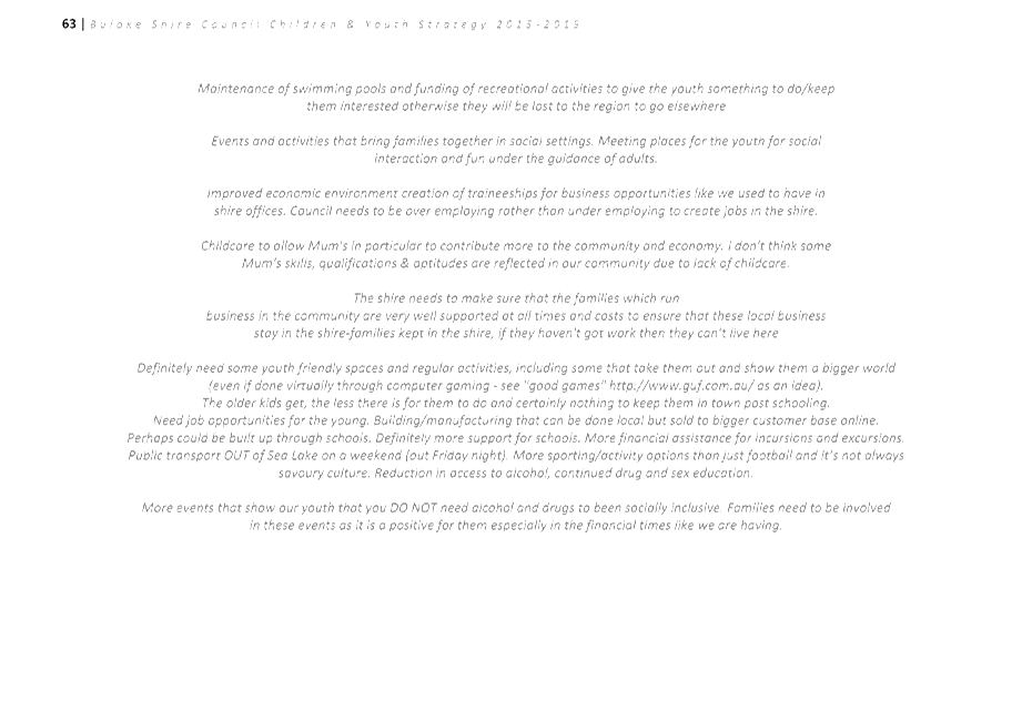 The draft Children and Youth Strategy 2015-2019 is an integrated whole-of-Council approach to ensure that children, young people and their families are understood, valued, supported and included in community life in Buloke.