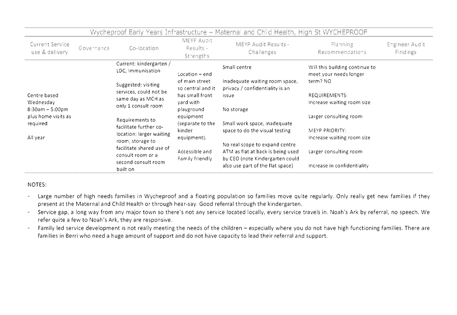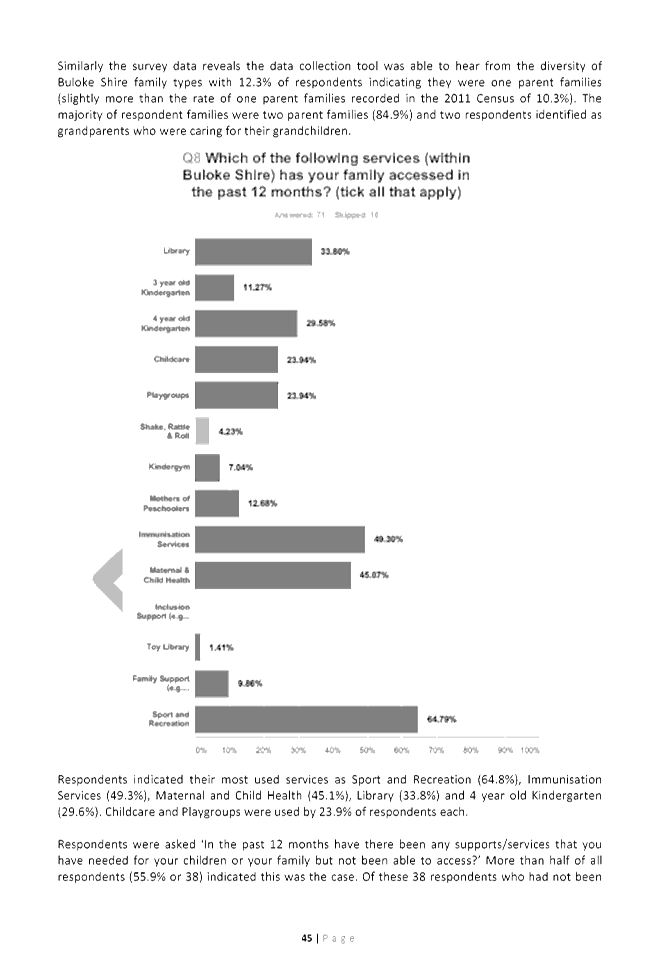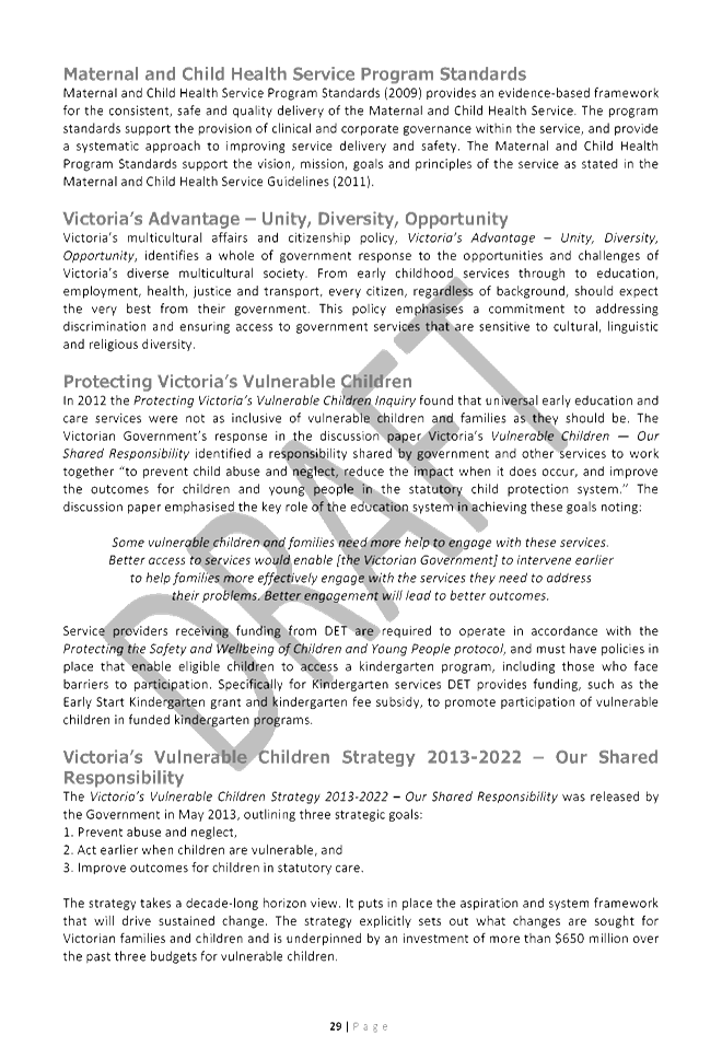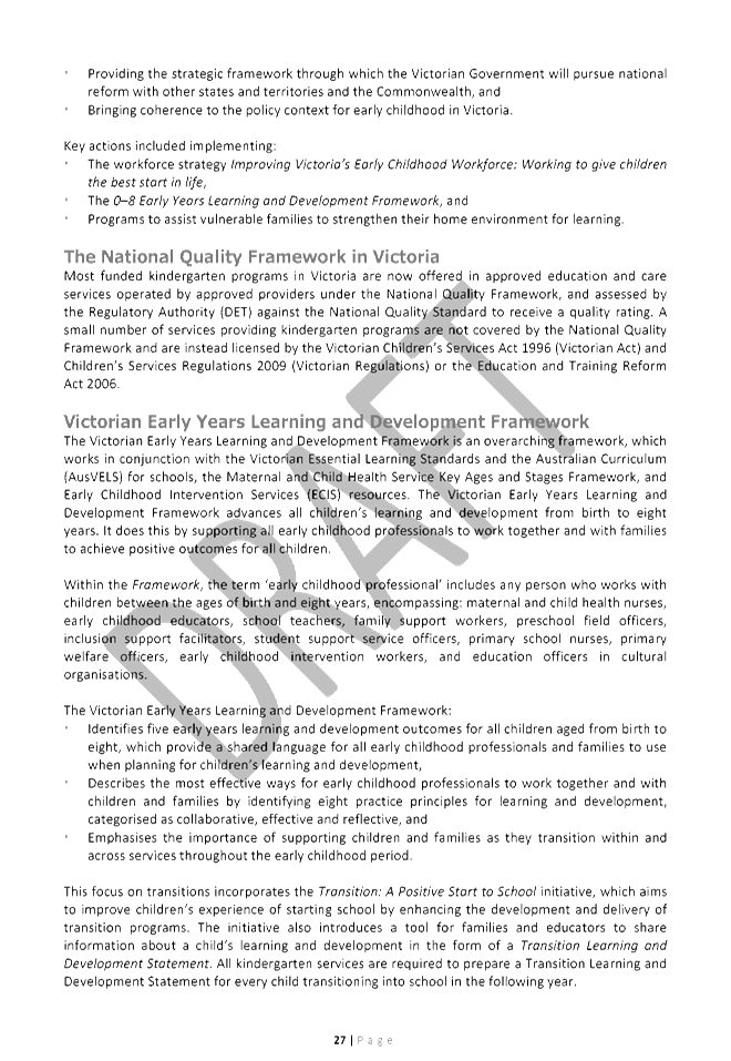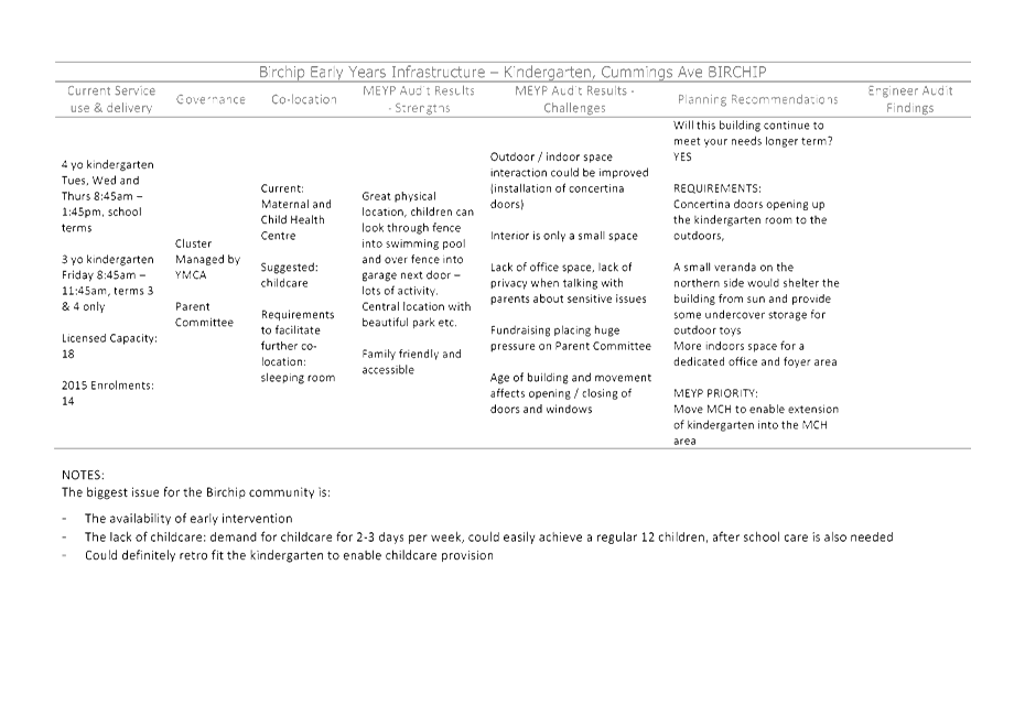 The draft Municipal Early Years Plan articulates local government’s role in early years services and it provides strategic direction for the development and coordination of early education, care and health programs, activities and other local developments that impact on children from birth to eight years. It is a universal document, not limited to Council’s statutory considerations.