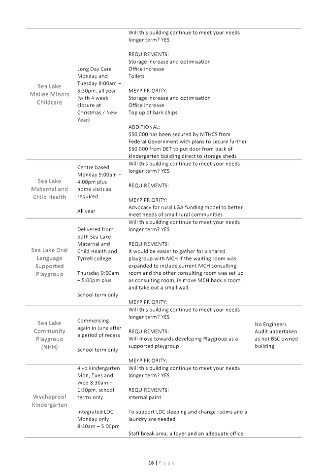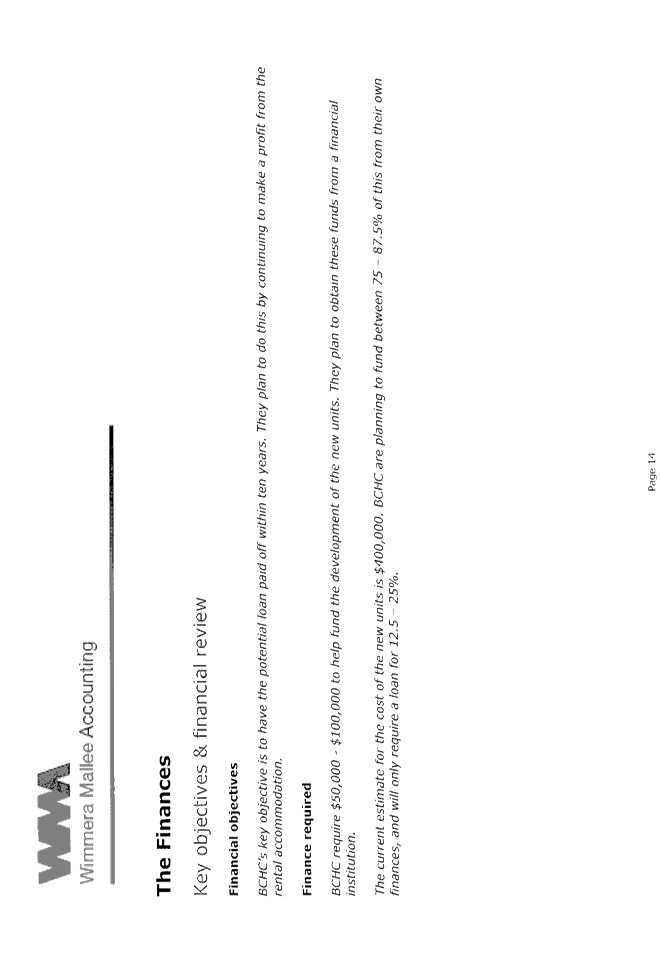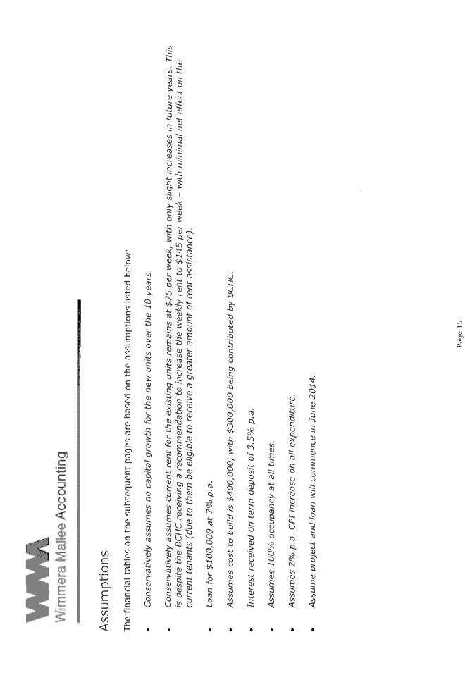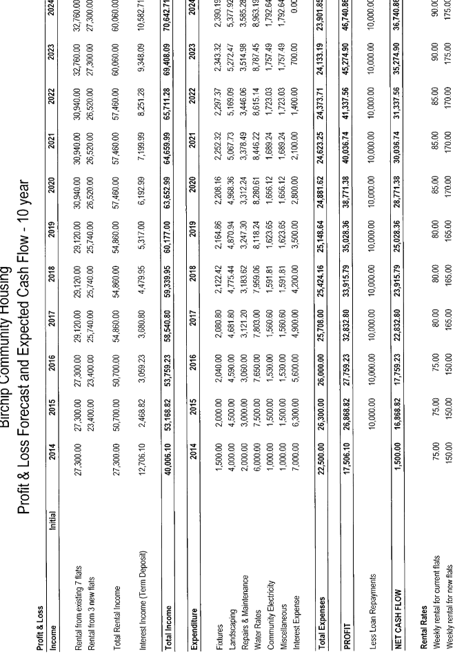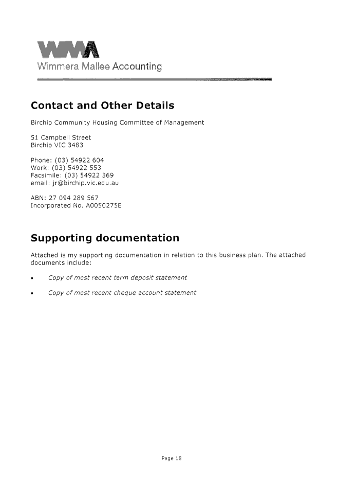 Operational and maintenance costs associated with the proposed developments will be the full responsibility of the Birchip Community Housing Committee.