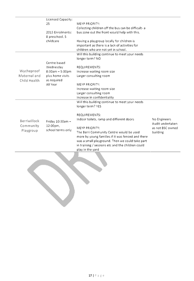 The draft plan and strategy have been developed in consultation with a number of Council staff members including the Manager of Community Services, Manager of Planning and Community Support, Maternal Child Health Nurses, Community Development Officer and Facilities Co-ordinator.