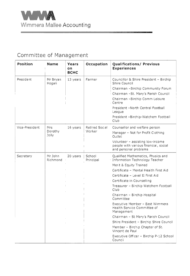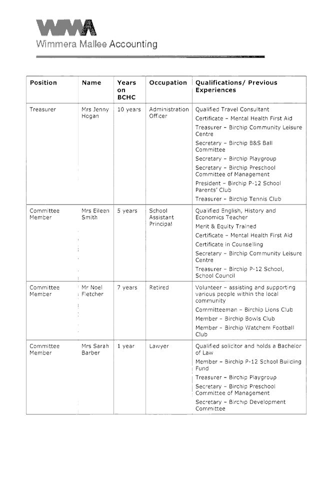 The Birchip Community Housing Committee has formally requested that Council (as the owner of the land) act as the guarantor for a ten-year loan up to a maximum of $150,000. In addition, the Instrument of delegation for the Committee establishes that Council needs to approve any loan borrowings over $50,000.