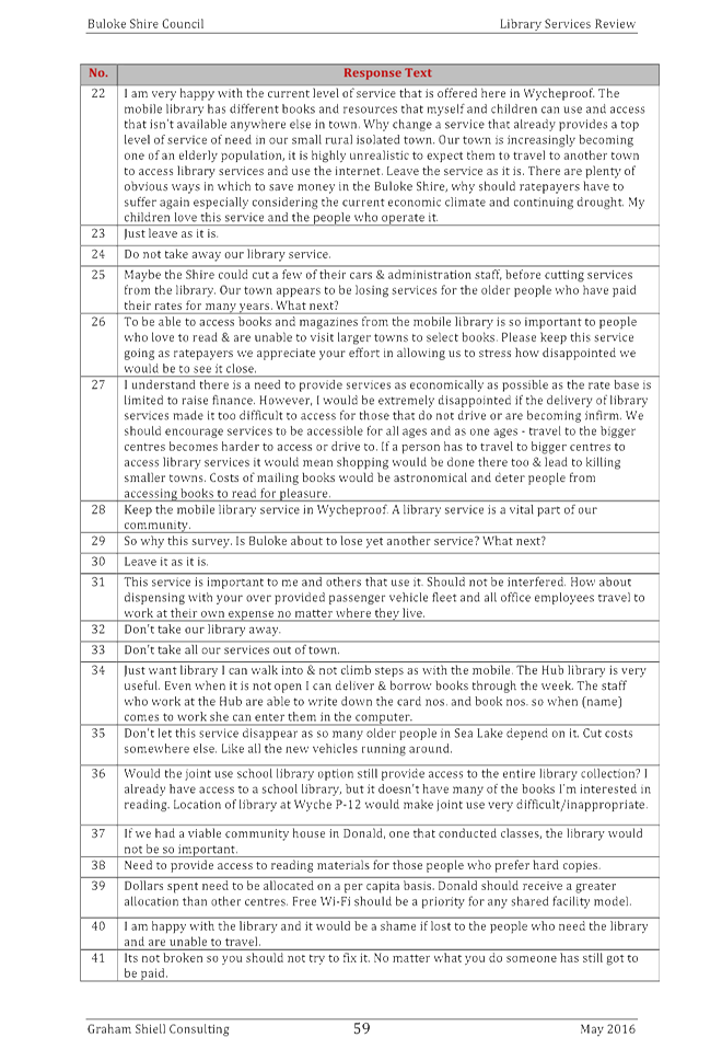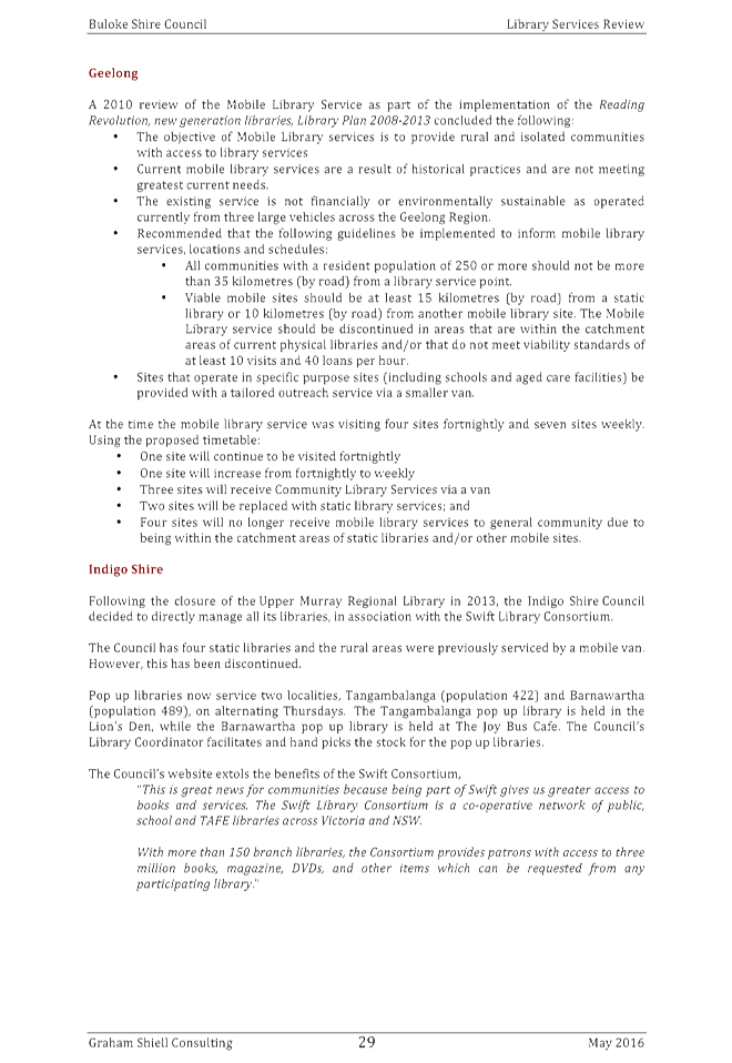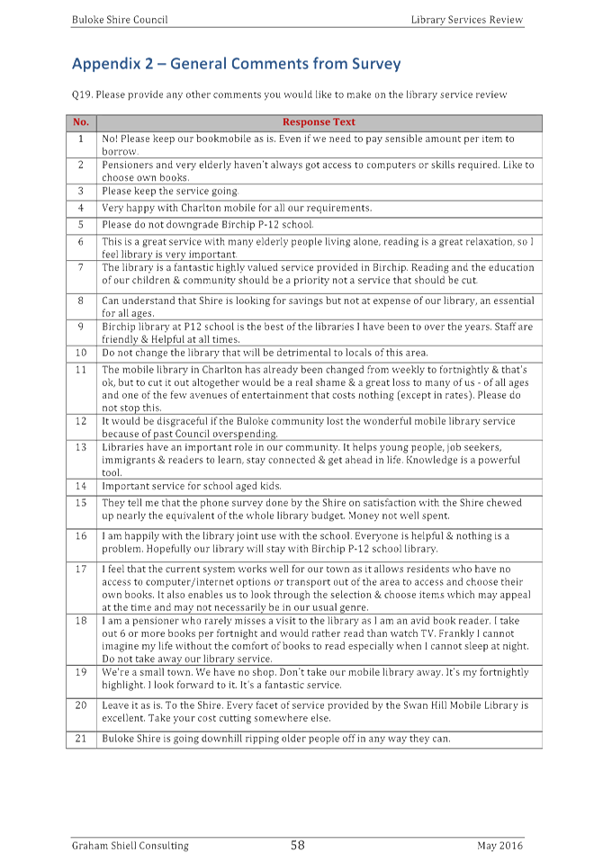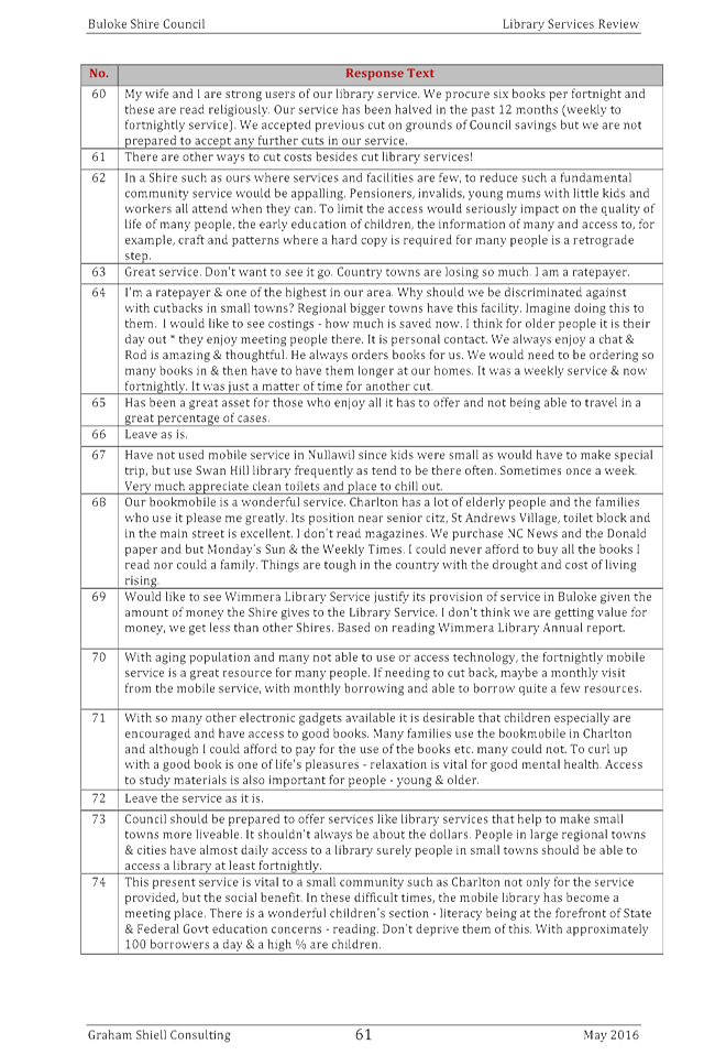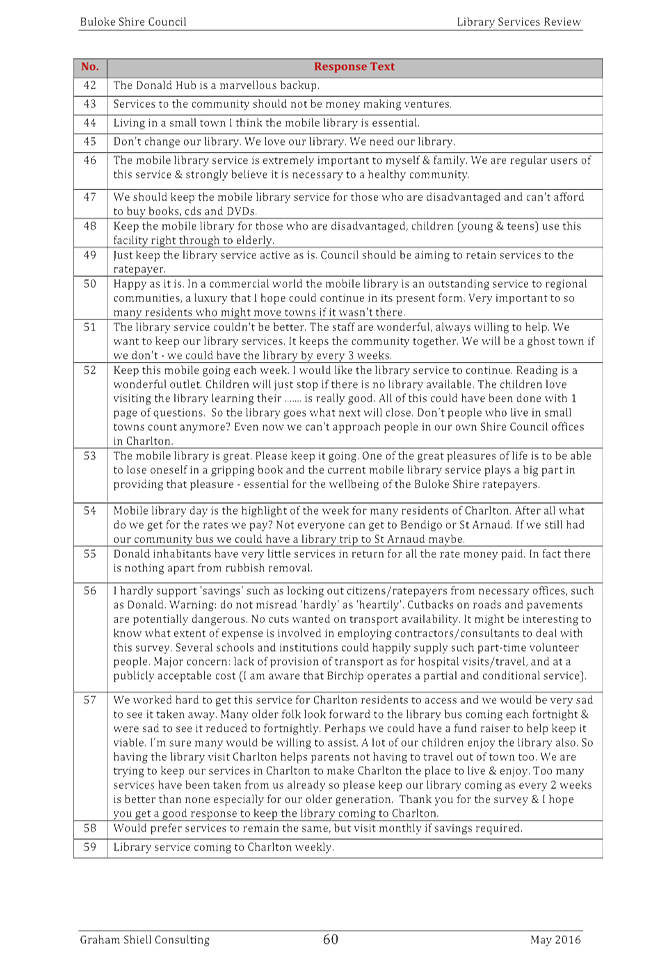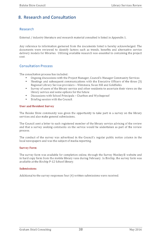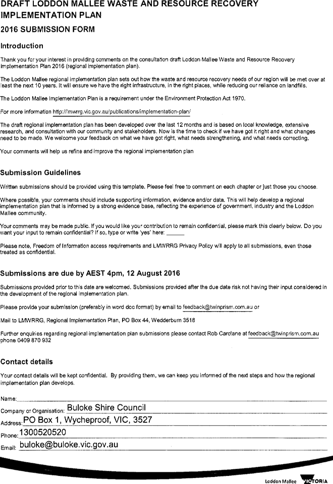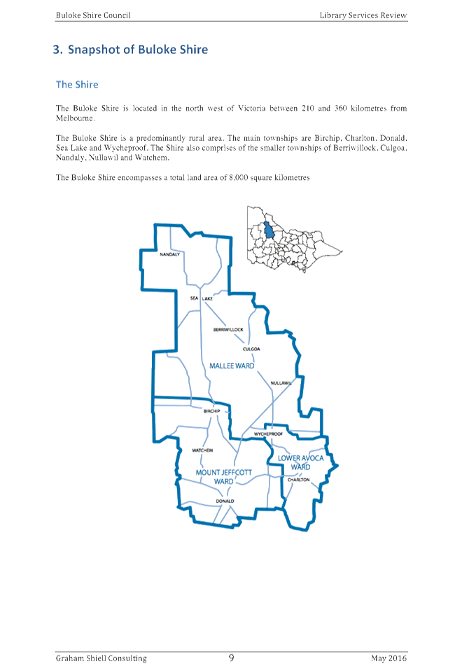 Consultation was held in the five townships without sewer and notification of the proposed plan development was put in the locally circulating papers. The draft plan if adopted by Council for exhibition will be advertised for consultation for the legislative period of 31 days in the locally circulating newspapers and on the Buloke council website and social media.