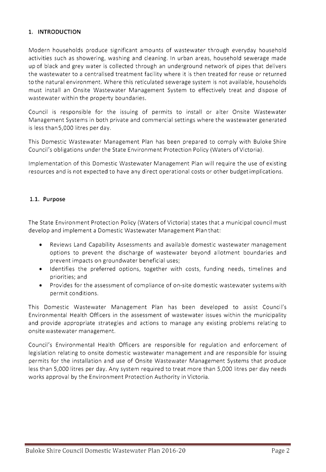 Attachment 1 Draft Domestic Wastewater Management Plan 2016-20