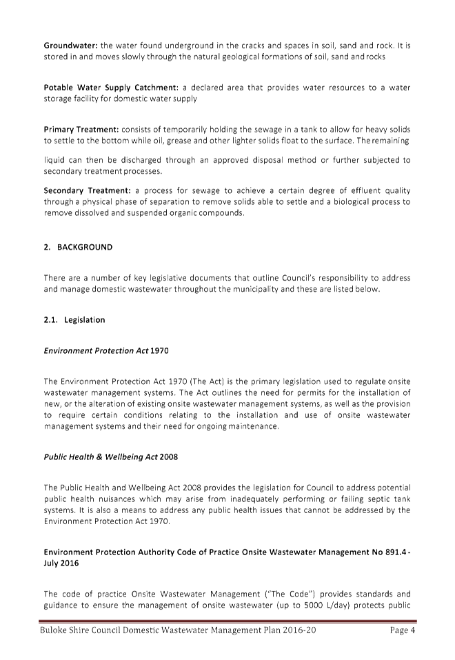 The DWMP has been prepared to comply with Buloke Shire Council’s obligations under the State Environment Protection Policy (Waters of Victoria).