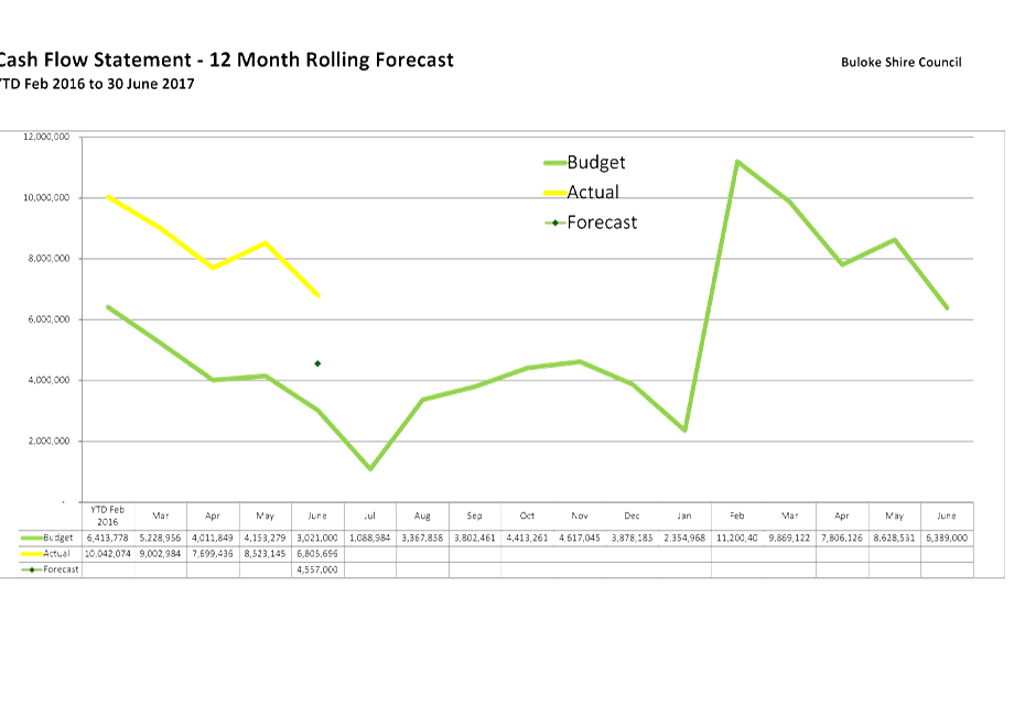 The cash flow graph shows that Council is in a stronger position than anticipated. It would have been expected that by the end of the financial year that the lines would have been closer together.